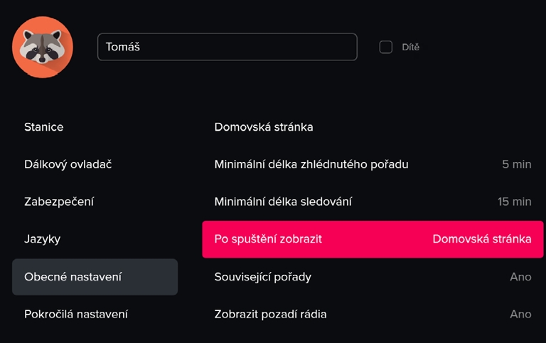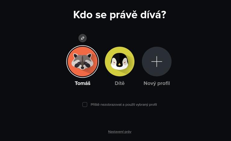 Každý profil si uchovává vlastní historii sledování, což usnadňuje pokračování v rozkoukaných pořadech.
