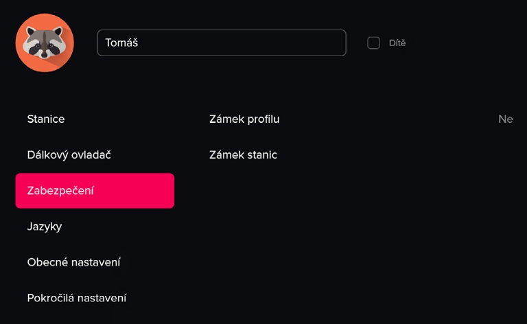 Profily lze chránit PIN kódem a umožňují rodičům nastavit omezení pro děti.